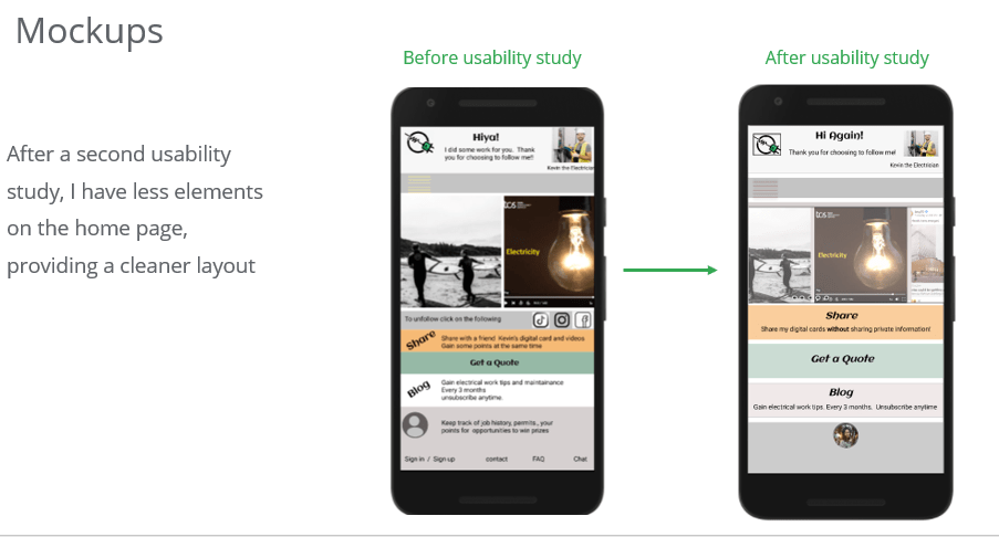 The impact of the design is to help Electricians have more transparent communication and have a strong rapport with clients and potential clients. Clients can research information through the app knowledge base on projects they like to pursue and have a productive conversation in the initial process with an Electrician.