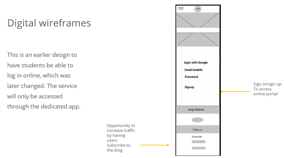 View the HIFI prototype of the dedicated app. Each button takes users to a page for services as indicated